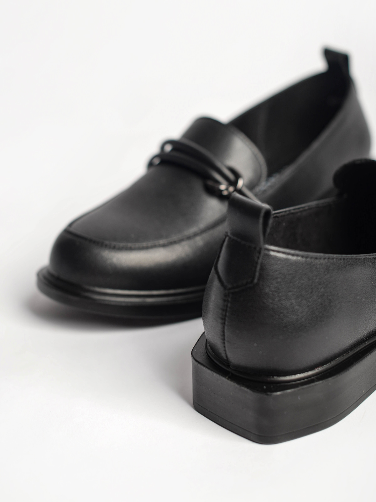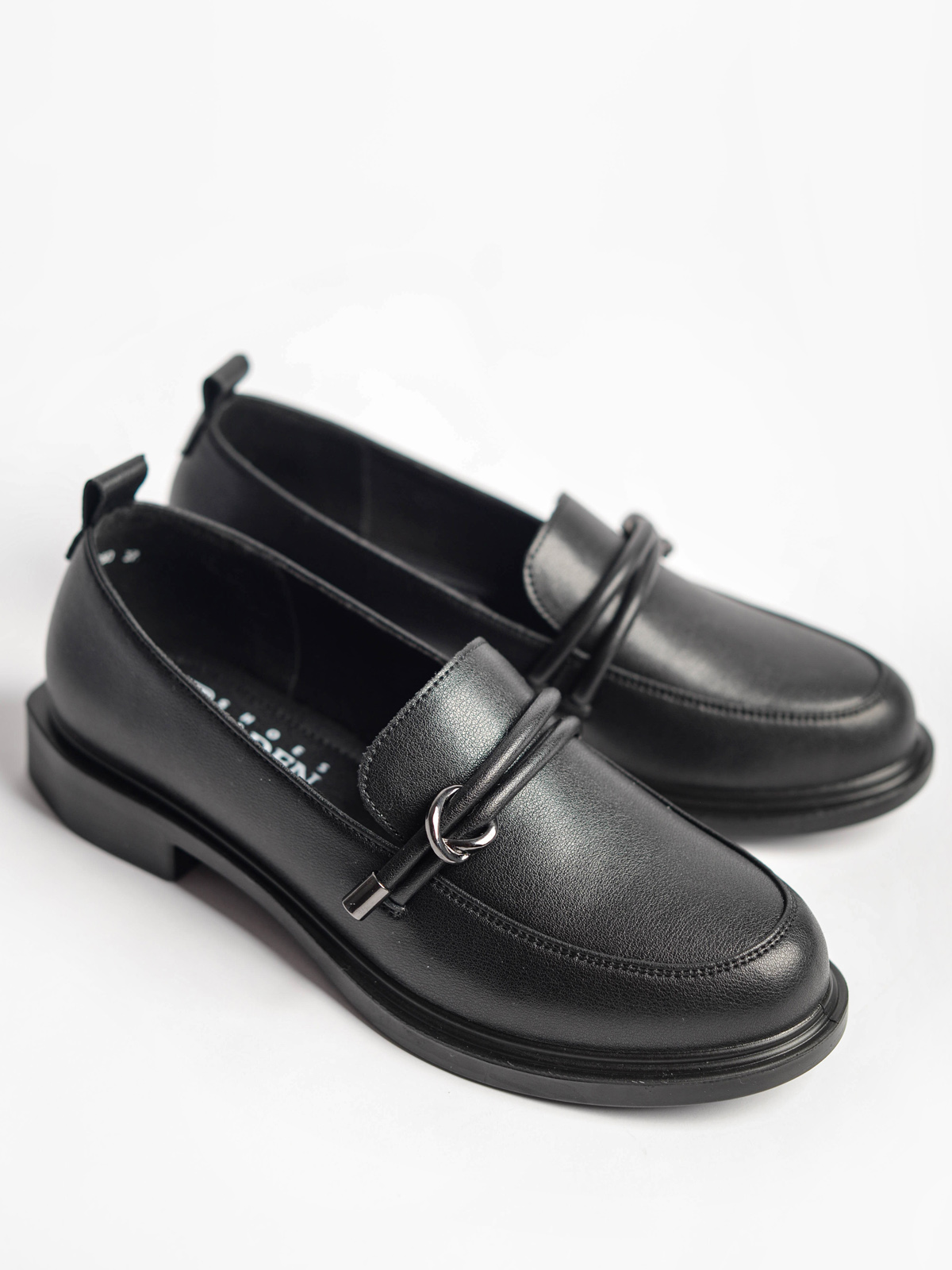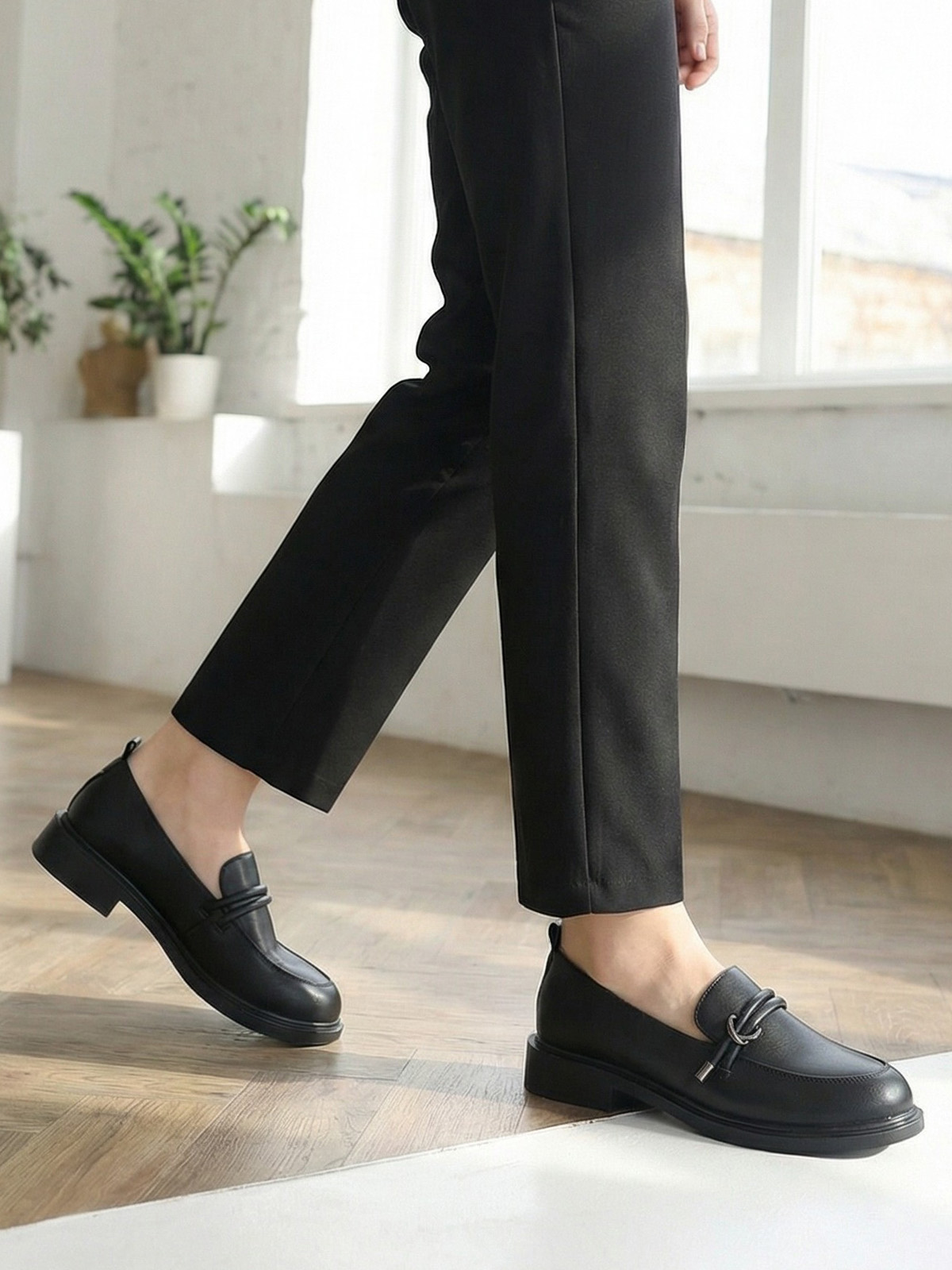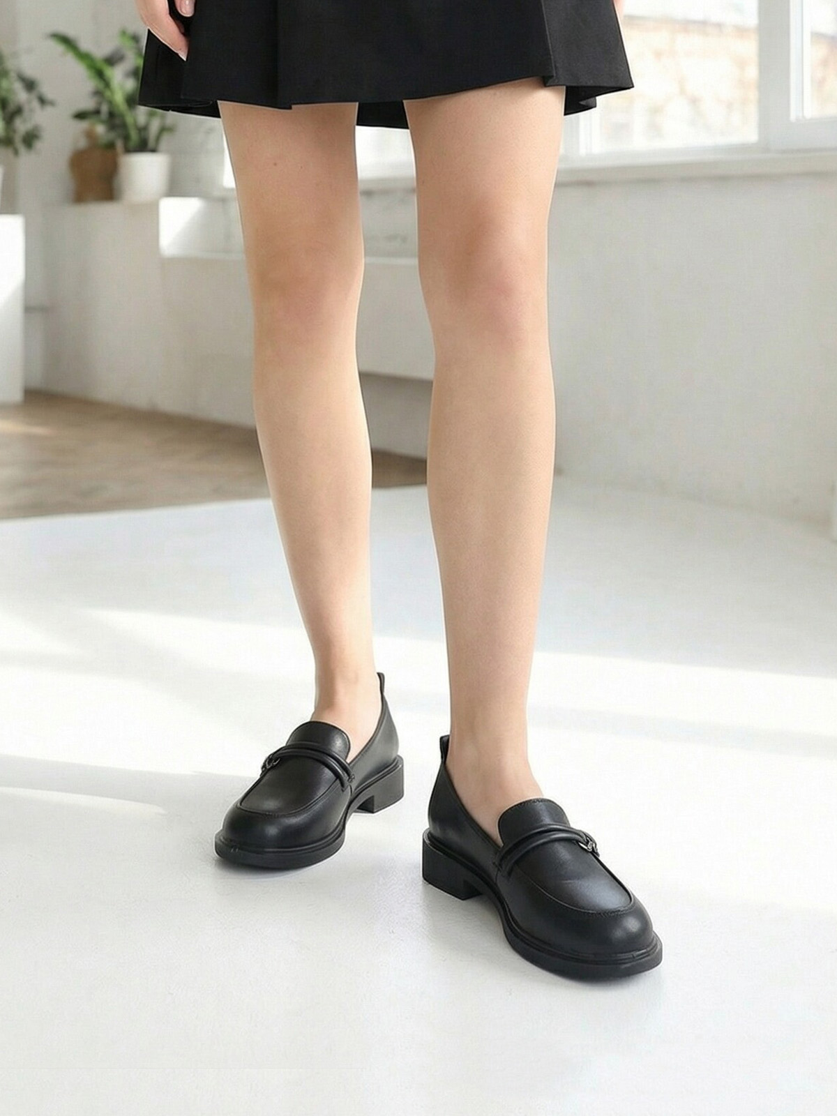 Эти туфли лоферы практичного черного цвета гармонично впишутся в любой Ваш образ. Лаконичный дизайн позволит носить лоферы кожаные - в офис или школу в качестве сменной обуви. Гибкая и легкая подошва из полиуретана и низкий каблук подарят невероятный комфорт.