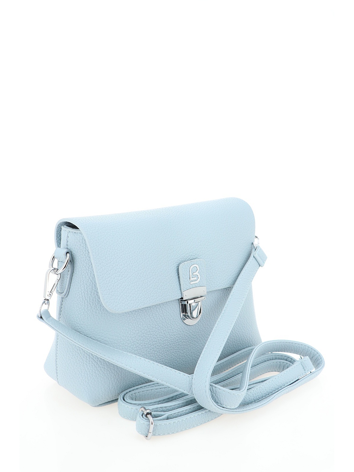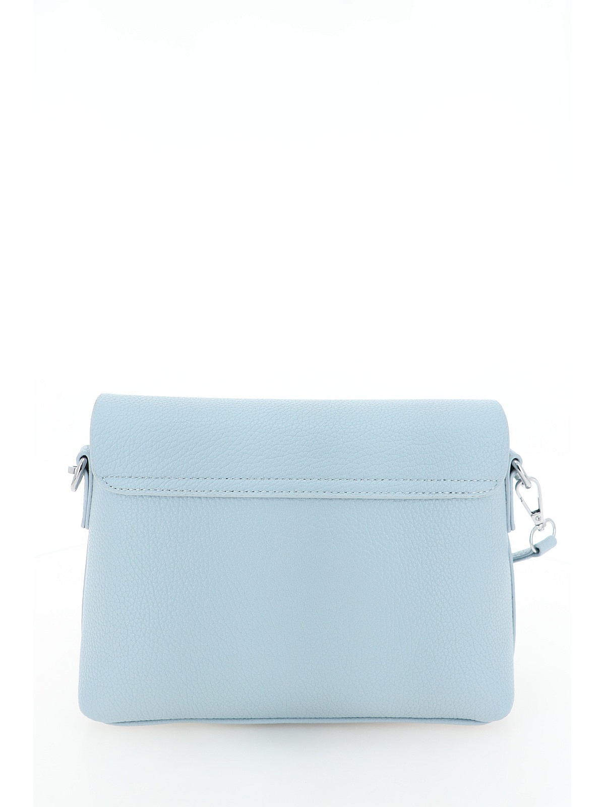 Сумка BADEN голубого цвета — компактная модель с мягким прямоугольным силуэтом и скруглёнными нижними углами. Лицевая сторона закрывается аккуратной застёжкой. Длинный регулируемый ремешок позволяет носить сумку на плече или через плечо. Верх выполнен из гладкой искусственной кожи, внутри — текстильный подклад. Спокойный голубой оттенок и лаконичный дизайн делают эту модель уместной для прогулок, встреч и летних путешествий.